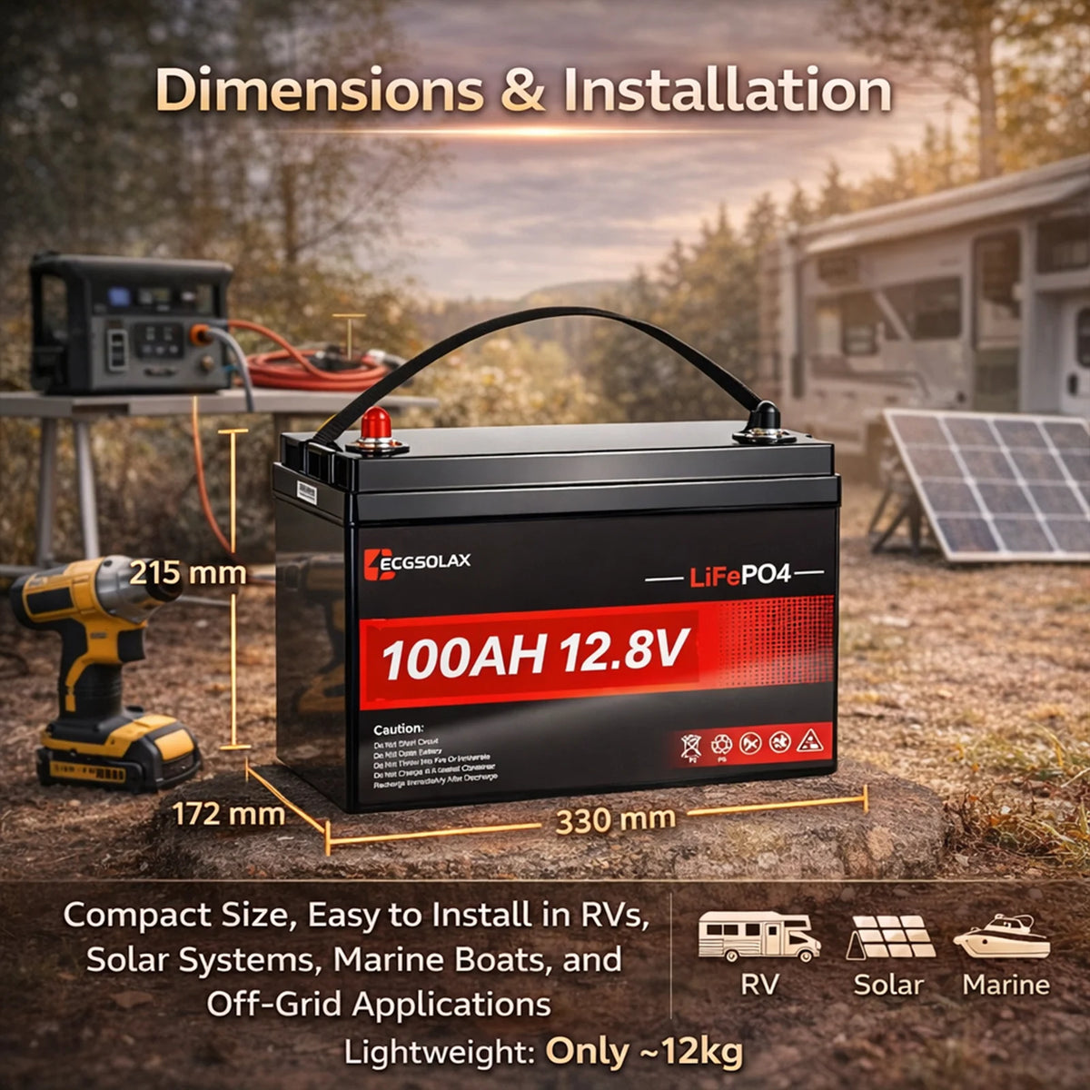 ECG 12.8V 100Ah LiFePO4 lithium battery is designed for multiple applications including: