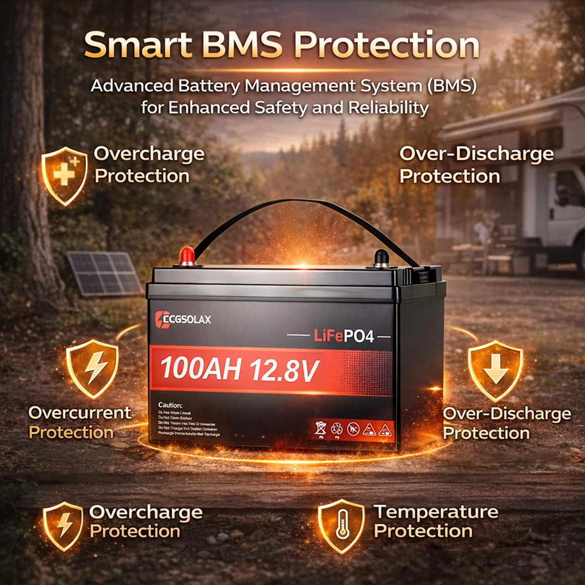 ECG-100AH-12.8V lithium battery delivers an ultra-long lifespan with up to 6000 deep charge cycles, providing significantly longer service life than traditional lead-acid batteries.