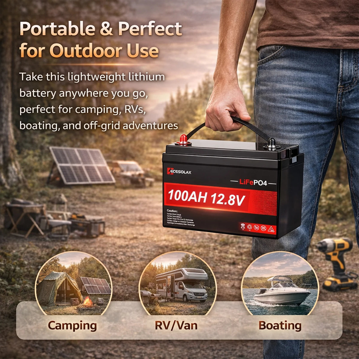 Take this lightweight LiFePO4 battery anywhere you go.