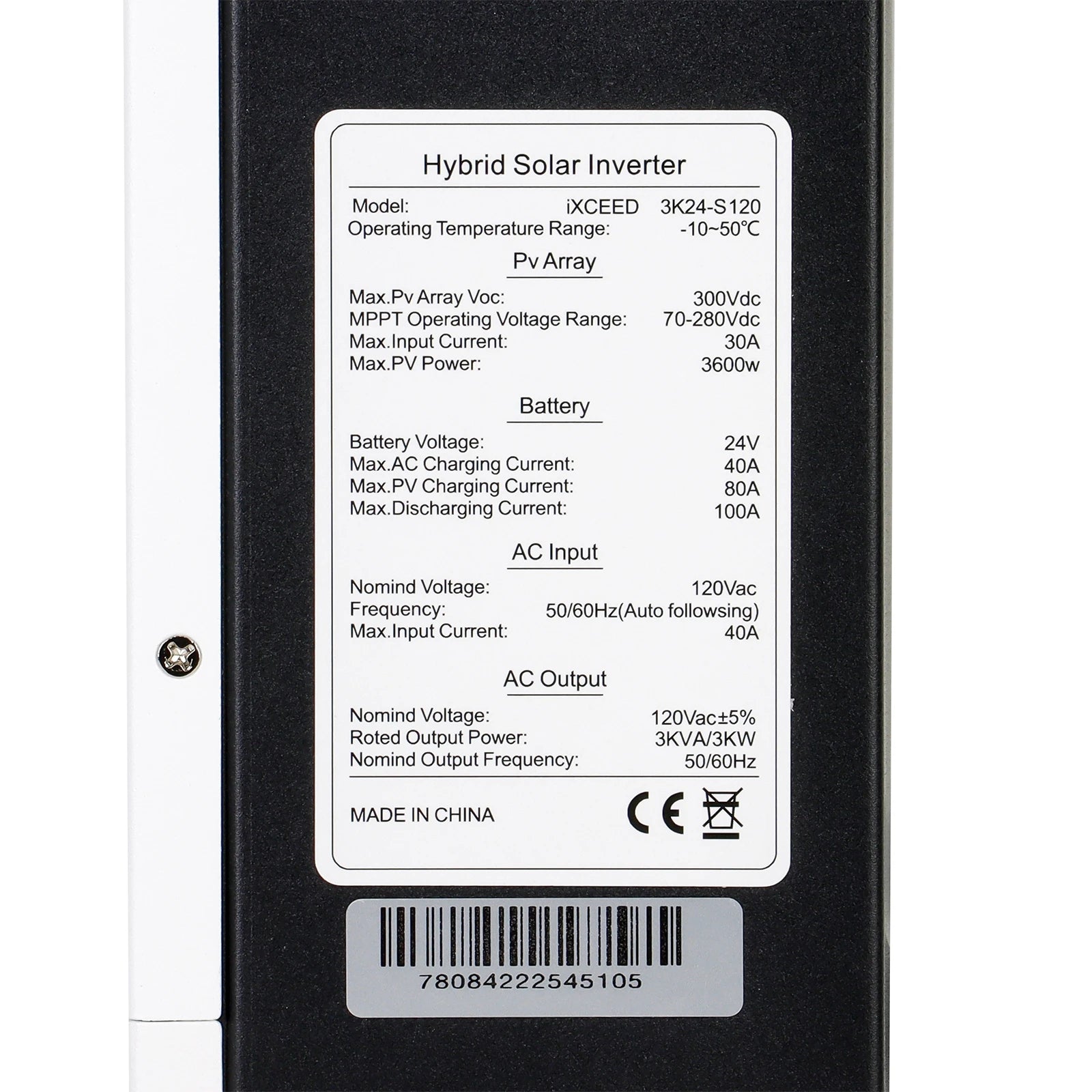 This Hybrid Solar Inverter delivers a steady 3000W/3000VA rated output power with a pure sine wave waveform, ensuring the safest energy for sensitive home electronics. It is the perfect power solution for off-grid cabins, providing high-quality 120Vac electricity just like the grid.
